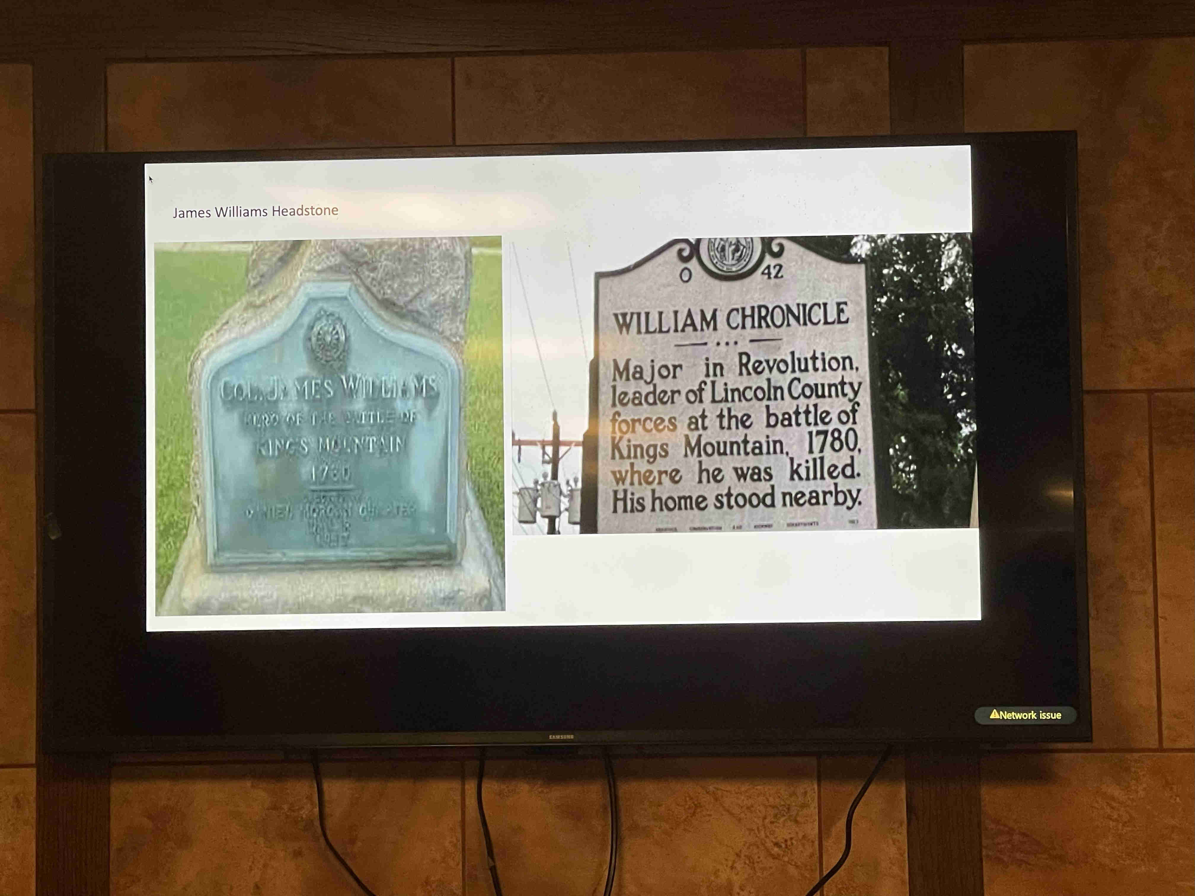 November 15: Chapter meeting: with Wayne Lynch teaching the members about Kings Mountain, also elections!