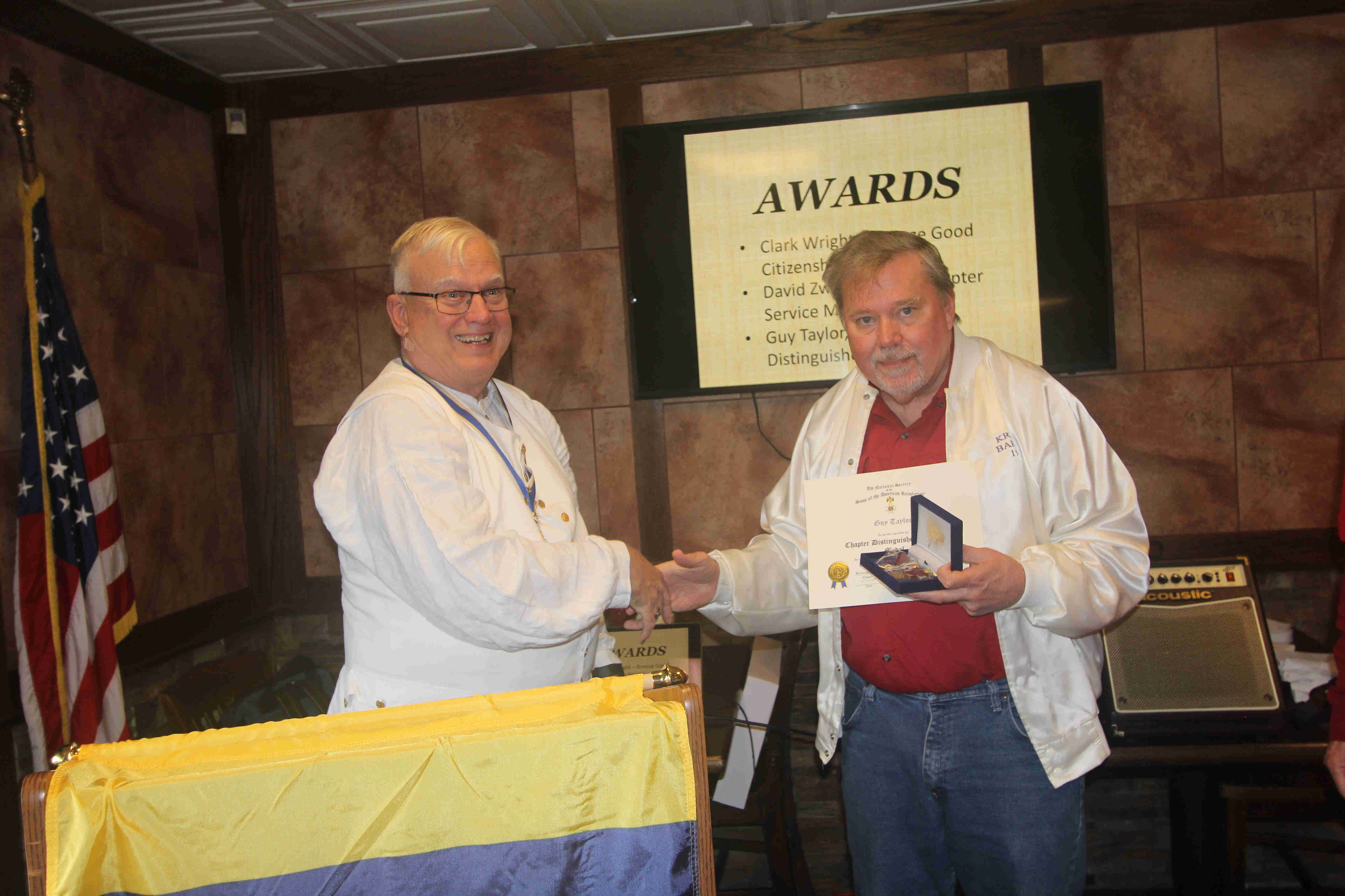 013 President John Loper presents Hugh Ferguson a certificate for providing his speech to the Chapter