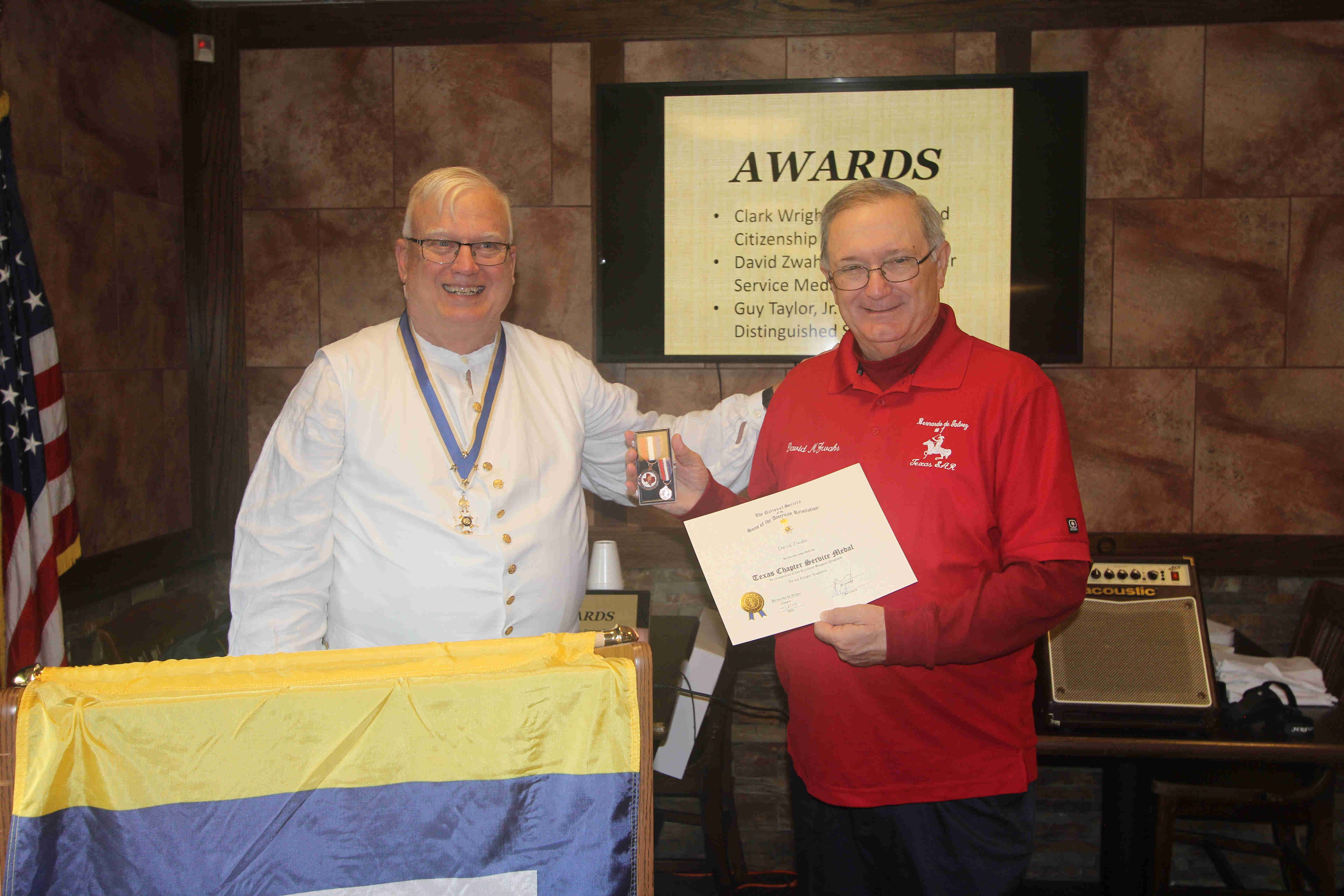 004 Color Guard Commander Hewitt awarding President Loper his Texas Silver Medal for participation
