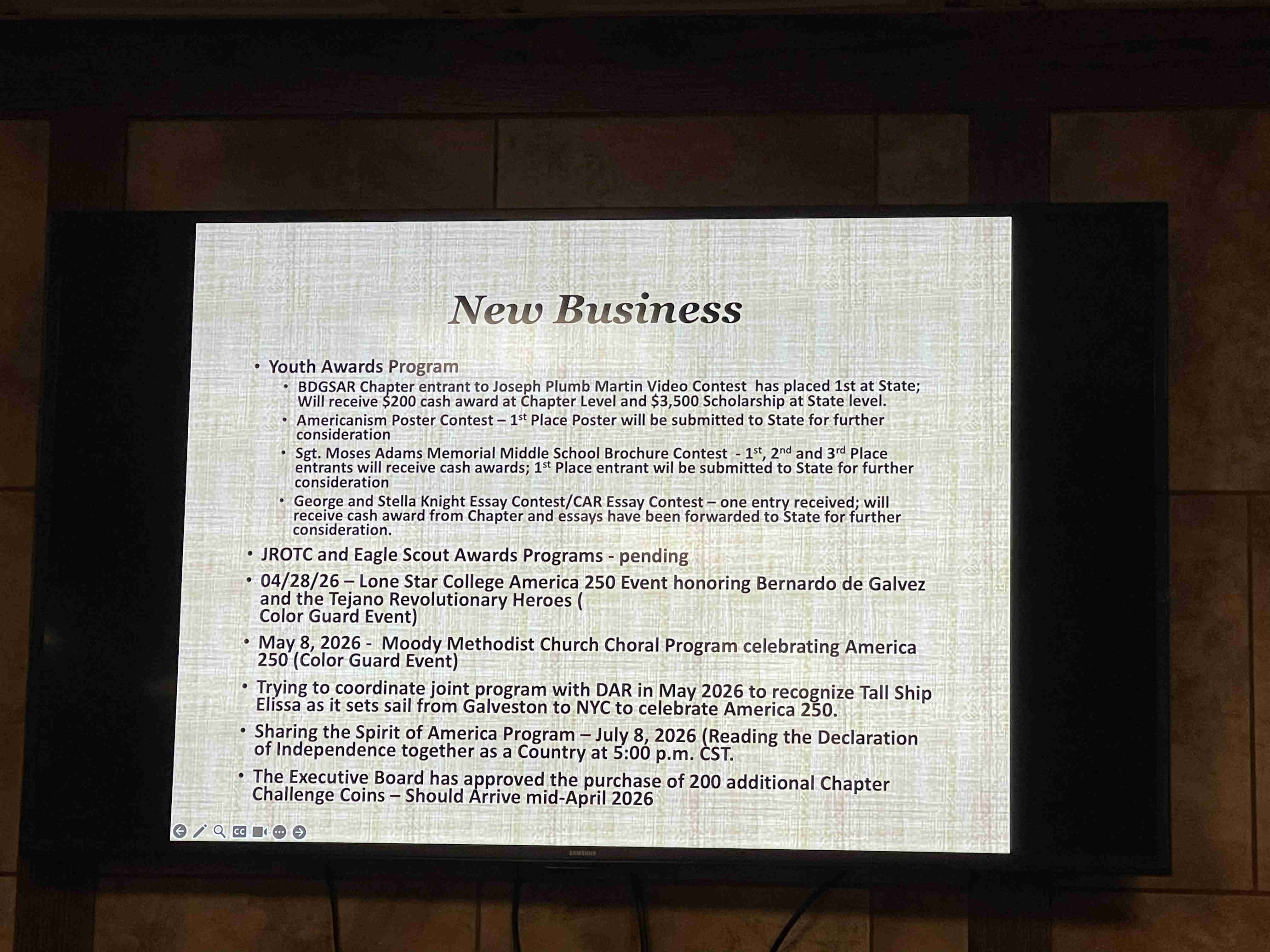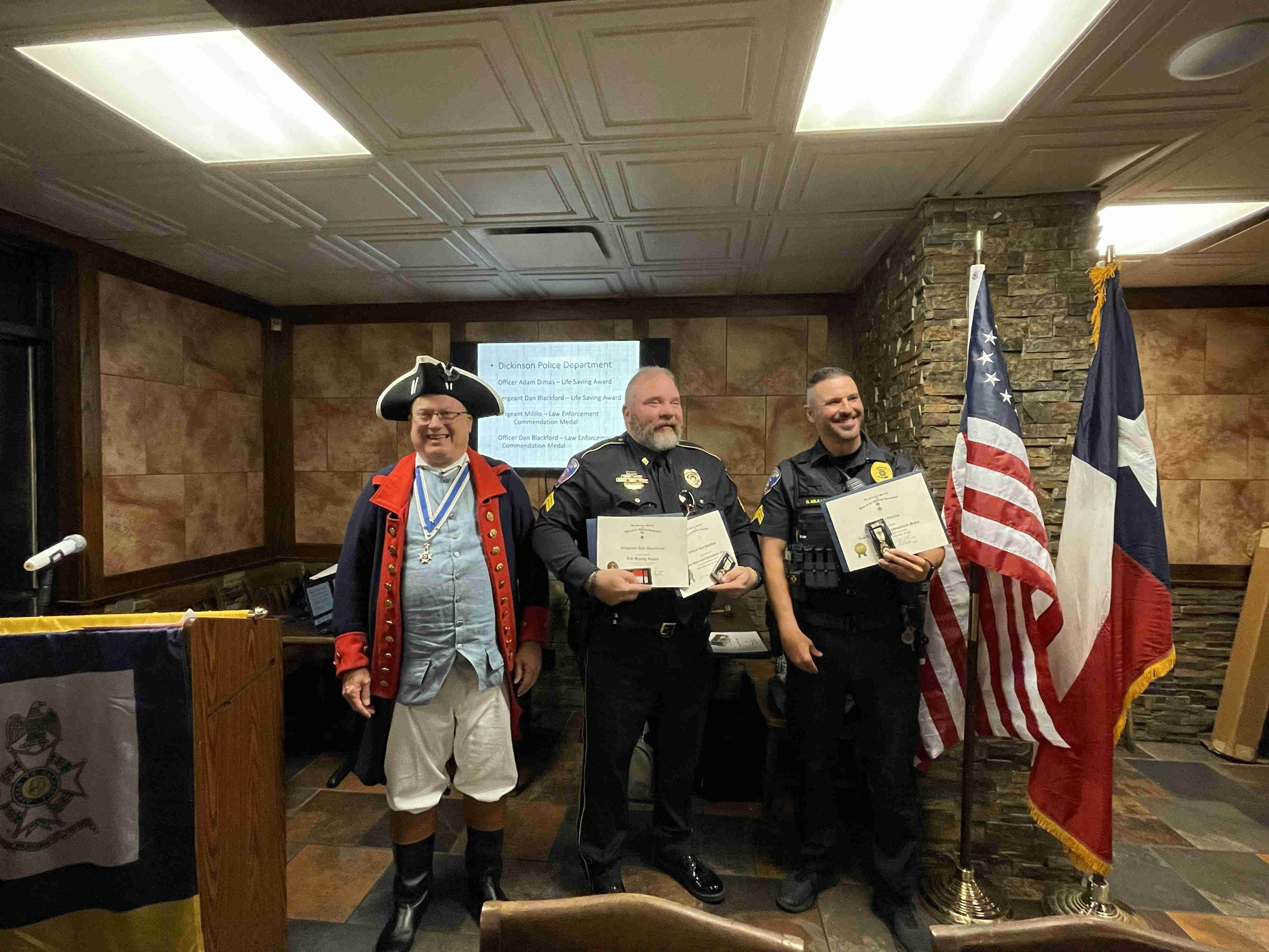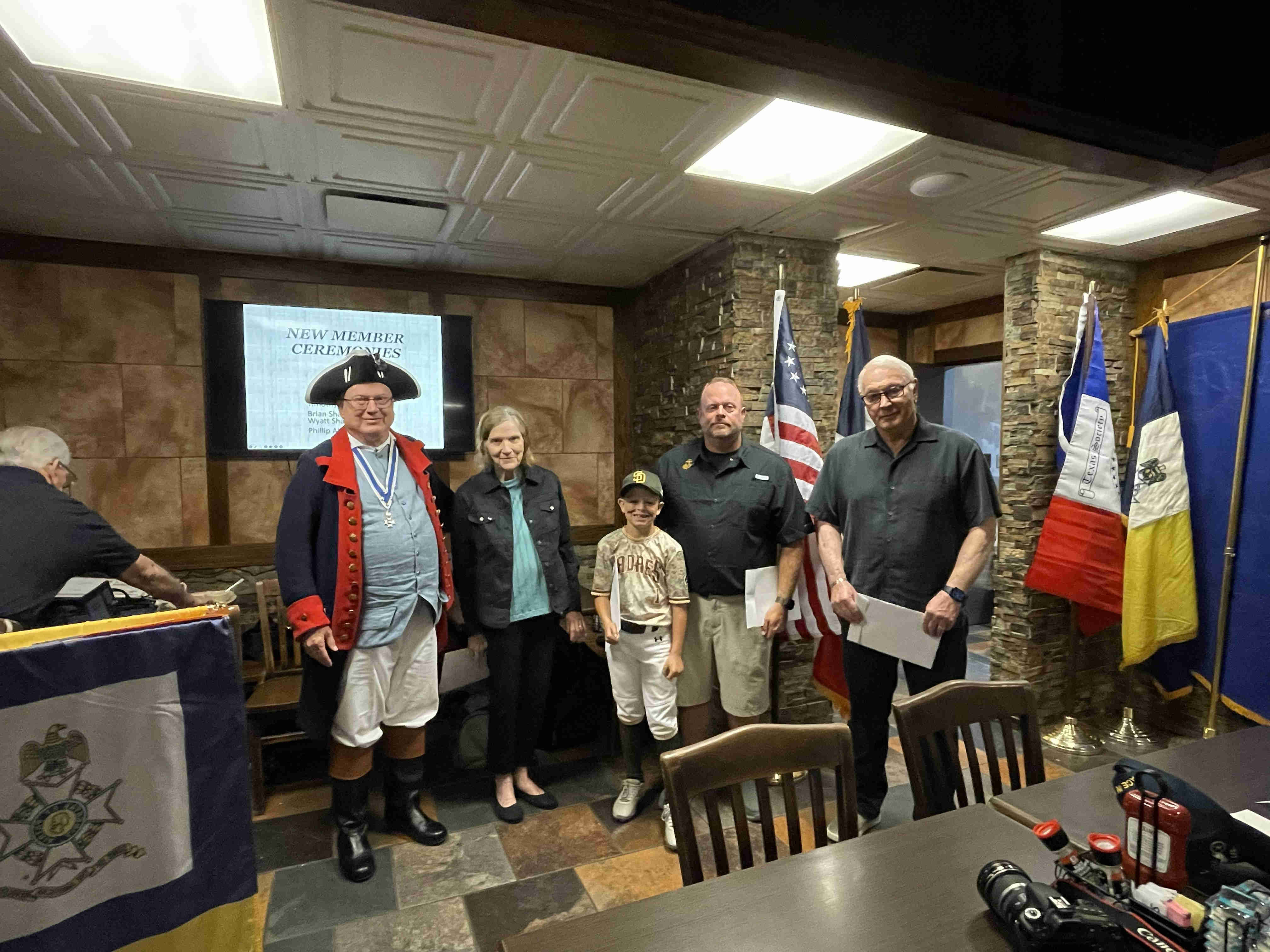 0037 President Loper President Loperthanking long time member and past-President Pete Lenes for the Texas Society Flag